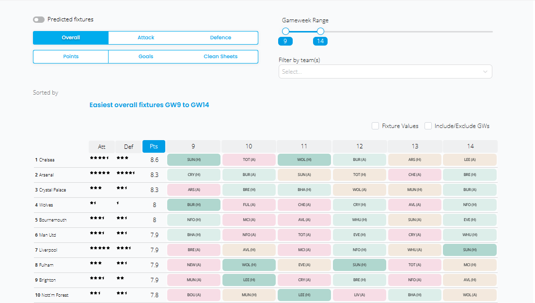 It has an advanced fixture rating which can be toggled between a specific amount of Gameweeks, whether short or long-term.