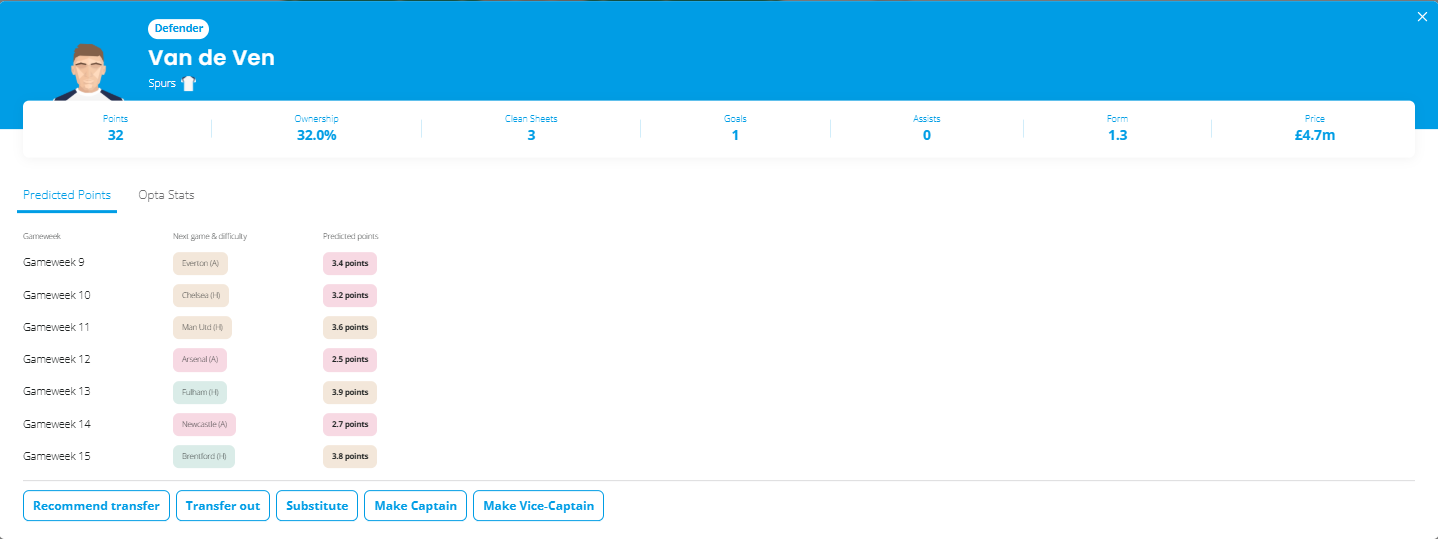 In this example, we want to switch Van de Ven for Omar Alderate. To do this we need to click on either of these players. This will bring up the following box: